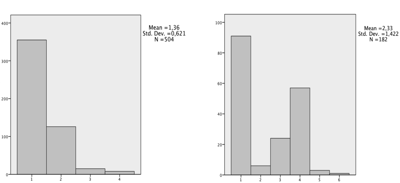 Table 7: Repetition frequency distribution between programs by Dimitri Mitropoulos (left) and Pierre Boulez (right)